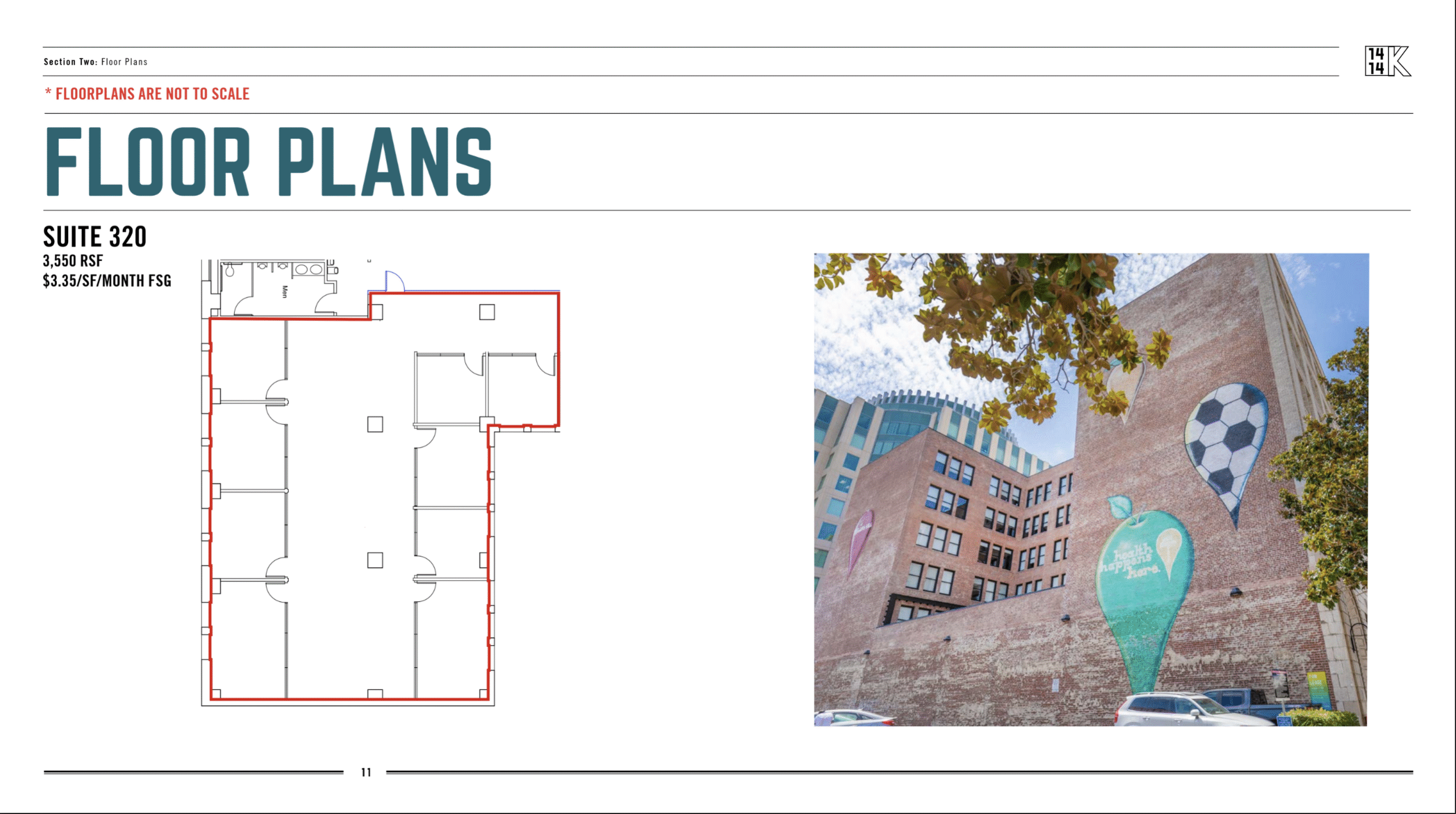 1414 K Street offers distinctive creative office space for lease in Downtown Sacramento's Governmental Affairs District. This 55,000 Sq Ft six-story office building features historic brick exterior with modern interior design, exposed ducting, hardwood floors, and abundant windows.