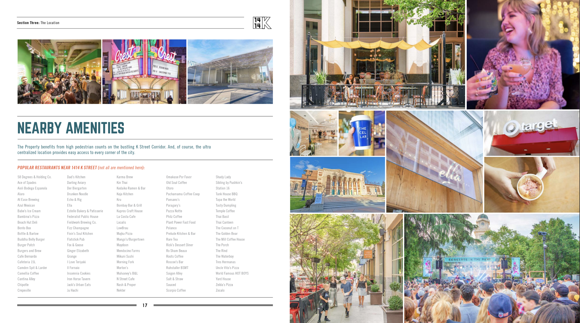 1414 K Streetl offers the following on-site and nearby amenities for the convenience and comfort of its tenants: