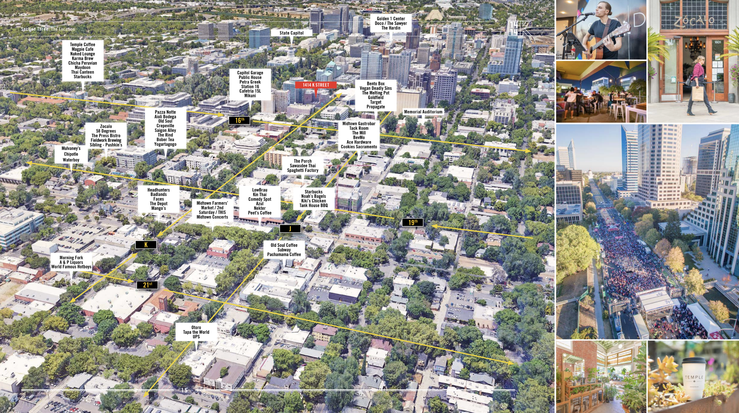 1414 K Street offers distinctive creative office space for lease in Downtown Sacramento's Governmental Affairs District. This 55,000 Sq Ft six-story office building features historic brick exterior with modern interior design, exposed ducting, hardwood floors, and abundant windows.