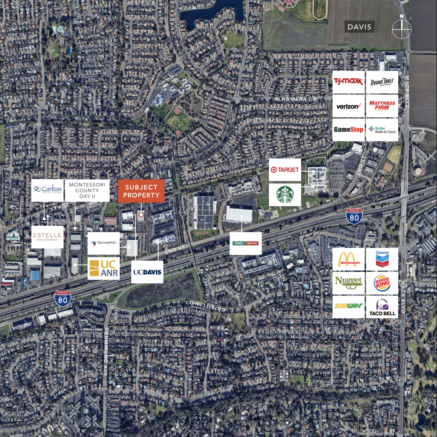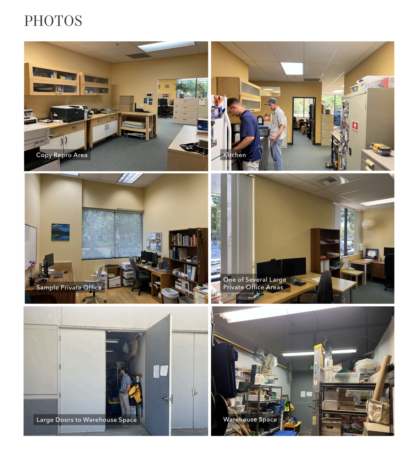 The current configuration includes 6 private offices, space for 9 cubicles in the open area, a large conference room, kitchen, and dedicated small warehouse/storage space. Building and monument signage are available. Located near Downtown Davis, UC Davis, and Interstate 80, the property also provides immediate adjacent access to bicycle and greenbelt trails.